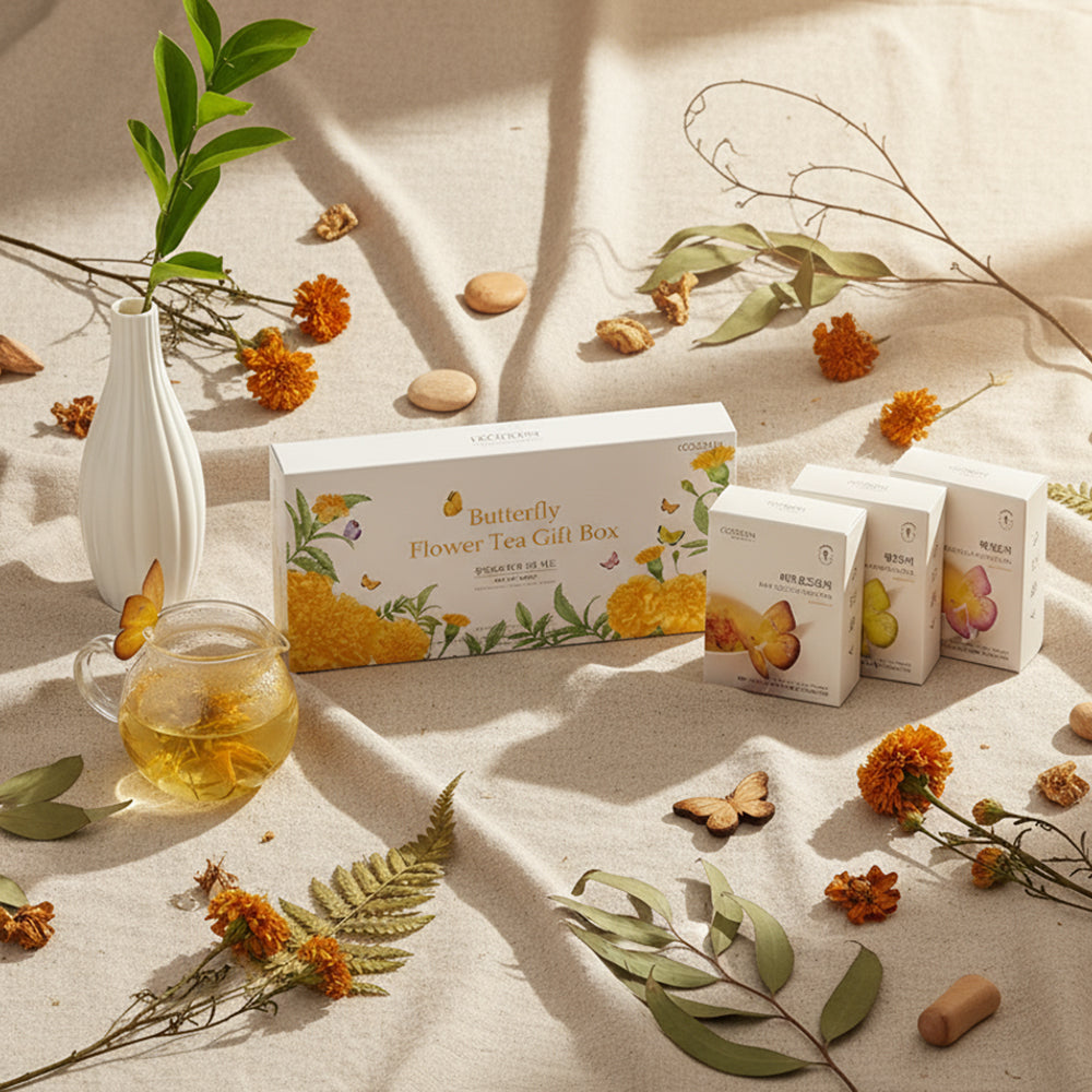 6 Kinds Butterfly Flower Tea Bag Gift Set (6 kinds × 3ea = 18 teabags) - ORANGE